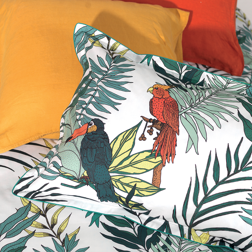 | Gamme OLANA : | Ein Sortiment aus Baumwollperkal 90 Fäden/cm², sehr hochwertig und weich, sublimiert durch eine Doppelnaht und Satinstiche. |